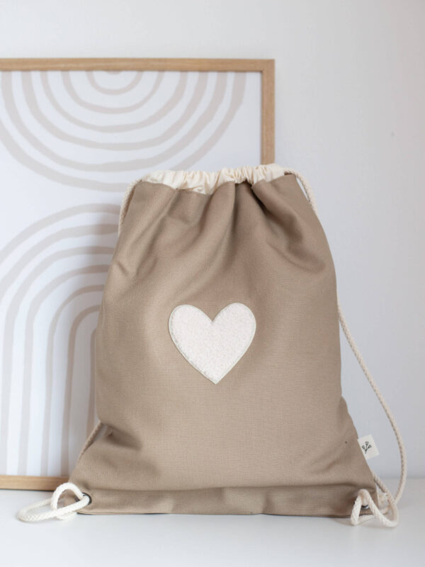 PASSFORM: Träger aus Baumwollband sind passend einstellbar und der Rücken ist gepolstert. Verschlossen wird der Rucksack ganz kinderleicht per Klettverschluss