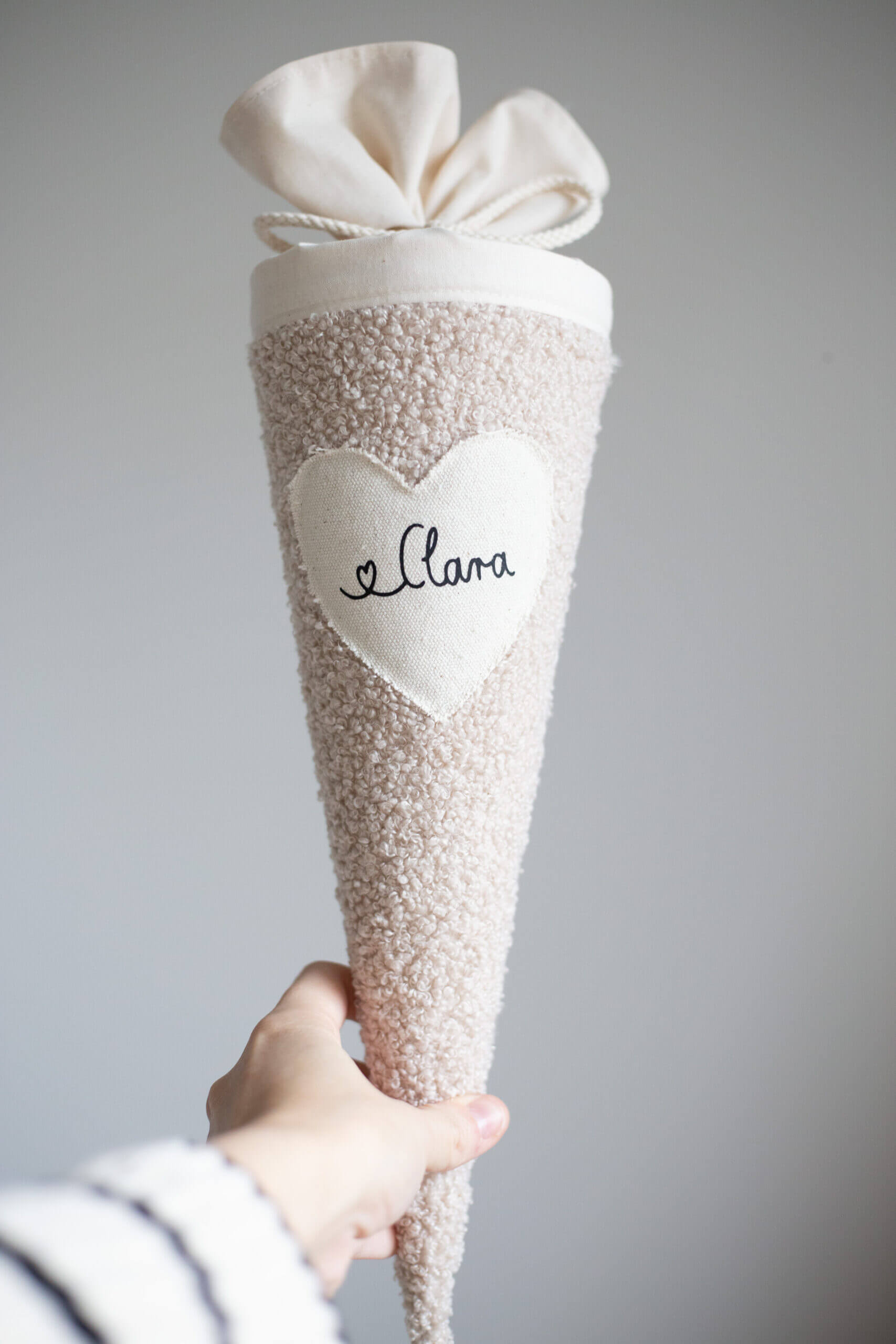 Die Personalisierung ist handgeschrieben und wird aufgebügelt. Ein echtes Unikat. Du möchtest die Schrift ohne Herz oder eine Alternative? Dann schreibe uns einfach – wir finden eine passende.